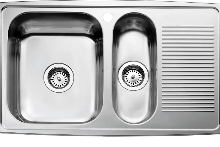 Keittiöallas huullos- tai alta-asennukseen suurella ja pienellä altaalla sekä valutustasolla, suuri allas vasemmalla. Sisältää koripohjaventtiilit, vesilukon, ylivuodon sekä hanareiän.