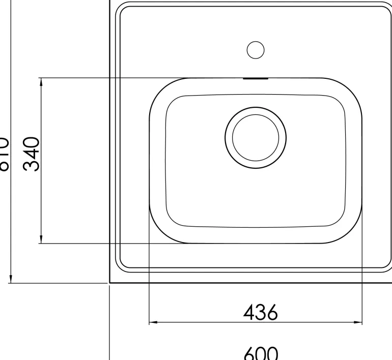 Intran keittiöallas ylivuodolla, koripohjaventtiilillä ja vesilukolla. Hanareiällä. Altaan mitat: 436 x 339 x 160 mm. Ulkomitat: 600x610x30 mm.