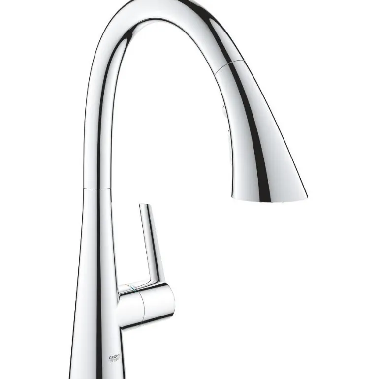 Yksikahvainen keittiöhana, 360° kääntyvä juoksuputki, yhden reiän asennukseen. Hanassa on GROHE StarLight -kromipinta, GROHE SilkMove 35 mm:n keraaminen säätöosa ja GROHE Magnetic Docking, joka varmistaa suihkupään helpon ja sujuvan vetäytymisen takaisin alkuasentoon. Ulosvedettävässä suihkupäässä on 3 suihkutoimintoa. Vaihto laminaarisuihkun, SpeedClean-suihkusuihkun ja GROHE Blade -suihkun välillä (jopa 70% pienempi vedenkulutus, voimakkaampi veden virtaus). Zedrassa on myös pysäytystoiminto (taukopainike), joka pysäyttää veden virtauksen.