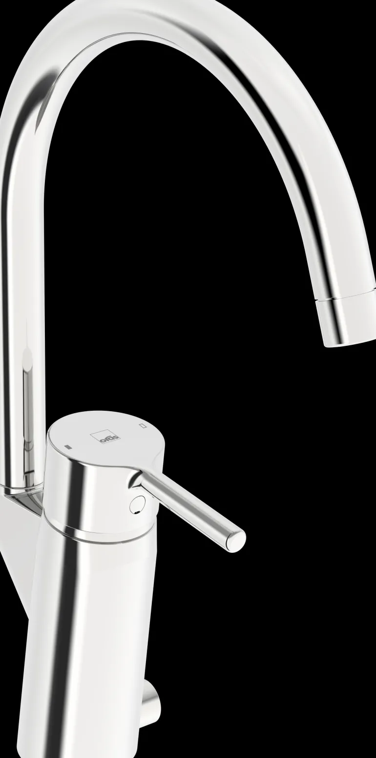 Keittiöhana, jossa on korkea, kääntyvä juoksuputki ja elektroninen pesukoneventtiili (kytketään kylmään veteen). Juoksuputken kääntymiskulma on 120° (mahdollista rajoittaa 0° tai 60°). Paristokäyttöinen 3 V. Automaattinen sammutus 4/12 h. Lämpötilan ja virtaaman rajoitusmahdollisuus. Oras ø 40 mm keraaminen säätöosa. Joustavat kytkentäputket.