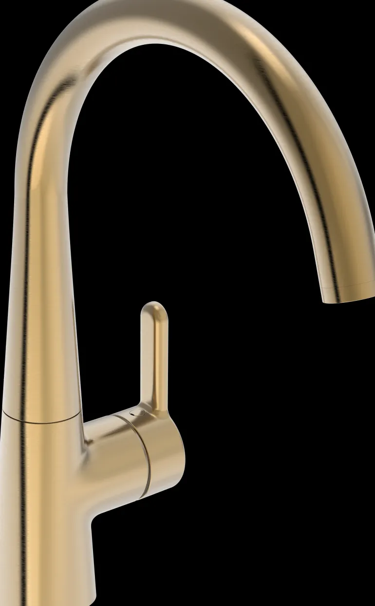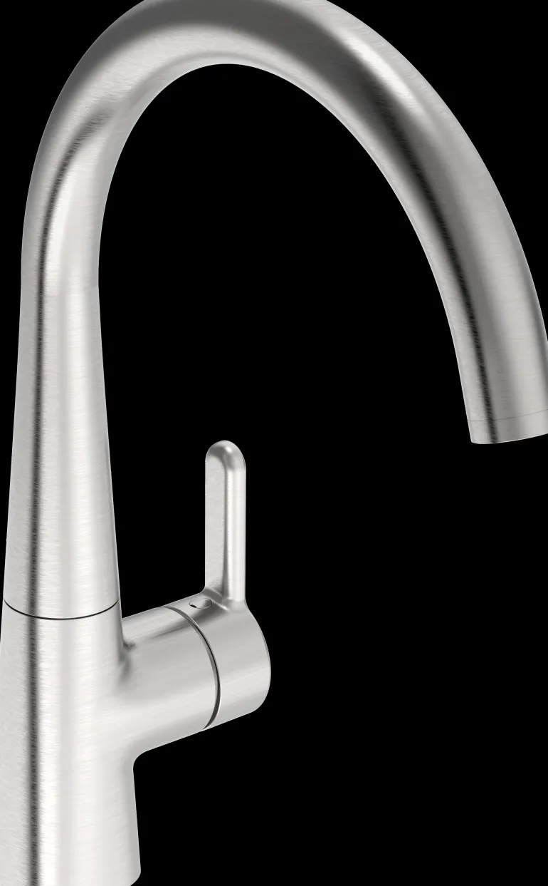 Keittiöhana, jossa älykäs pesukoneventtiili ja korkea, kääntyvä juoksuputki 120° (mahdollista rajoittaa 0° tai 60°).