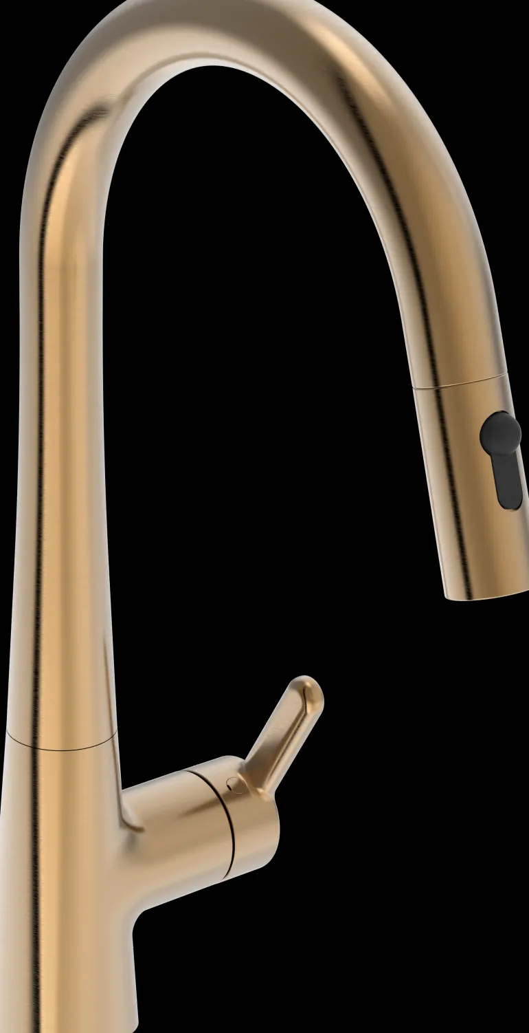 Keittiöhana, jossa sivuvipu sekä korkea, kääntyvä ja ulosvedettävä juoksuputki 120° (mahdollista rajoittaa 60°-0°). Juoksuputken pituus on säädettävissä. Joustavat kytkentäputket. Lämpötilan ja virtaaman rajoitusmahdollisuus. Harjattu teräs.