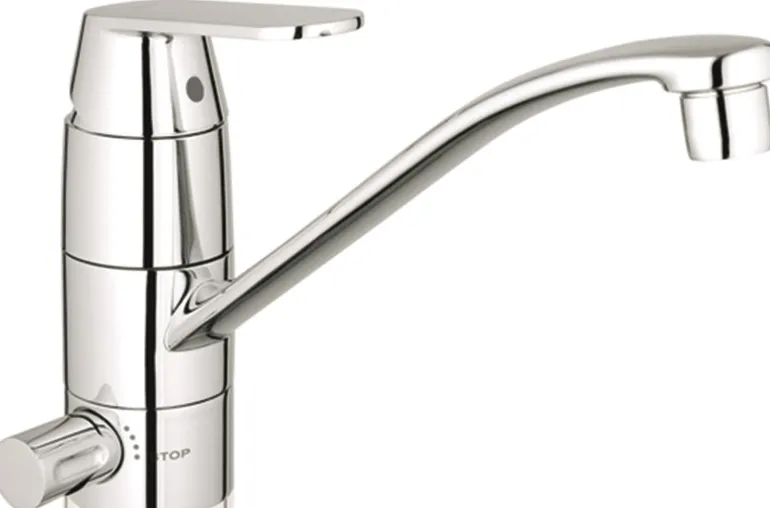 Älykkäästi muotoiltu keittiöhana integroidulla sulkuventtiilillä, joten voit tarvittaessa helposti sulkea astianpesukoneen vedensyötön. Yksikahvaista sekoitinta on helppo käyttää, ja siinä on huippumoderni keraaminen GROHE SilkMove -säätöosa, jonka avulla voit hallita veden lämpötilaa ja virtausta pehmeällä ja yksinkertaisella tarkkuudella.