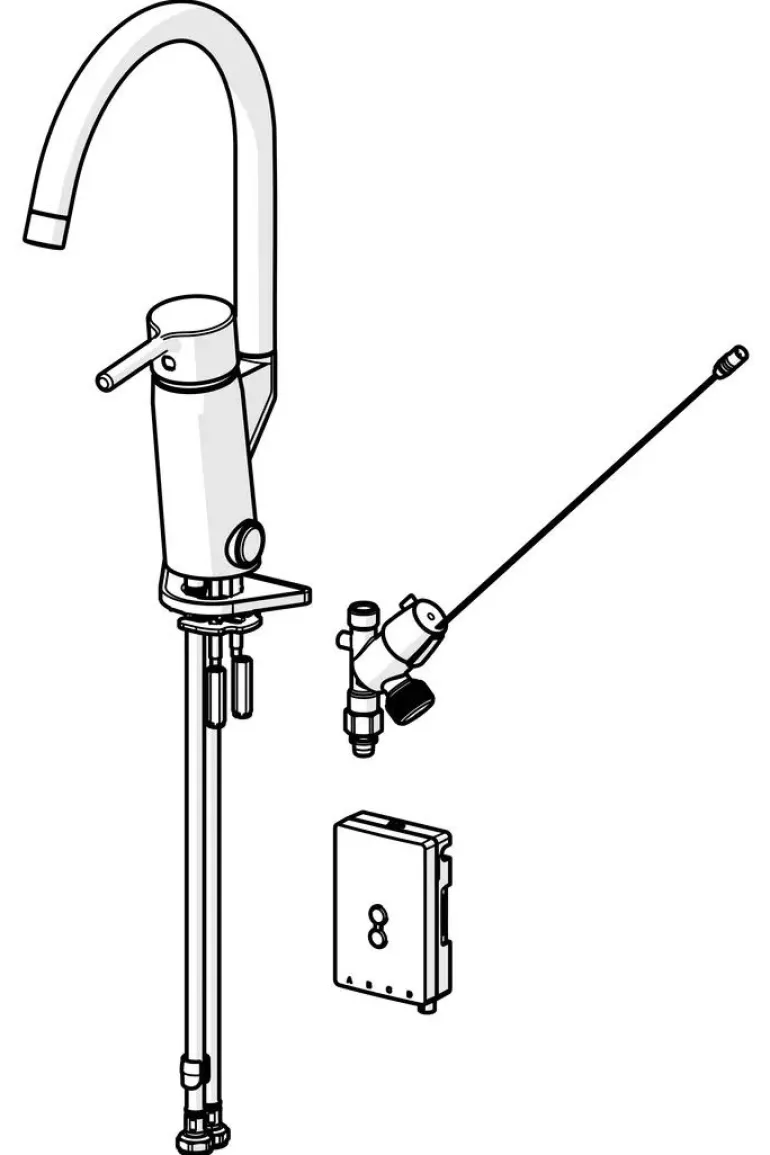 Keittiöhana, jossa on korkea, kääntyvä juoksuputki ja elektroninen pesukoneventtiili (kytketään kylmään veteen). Juoksuputken kääntymiskulma on 120° (mahdollista rajoittaa 0° tai 60°). Paristokäyttöinen 3 V. Automaattinen sammutus 4/12 h. Lämpötilan ja virtaaman rajoitusmahdollisuus. Oras ø 40 mm keraaminen säätöosa. Joustavat kytkentäputket.
