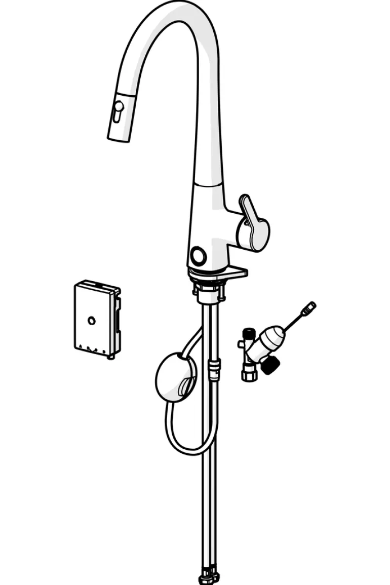 Elektroniset osat: Magneettiventtiili, Erillinen ohjausyksikkö, Merkkivalo toiminnoille, Alhaisen paristovarauksen ilmaisin
