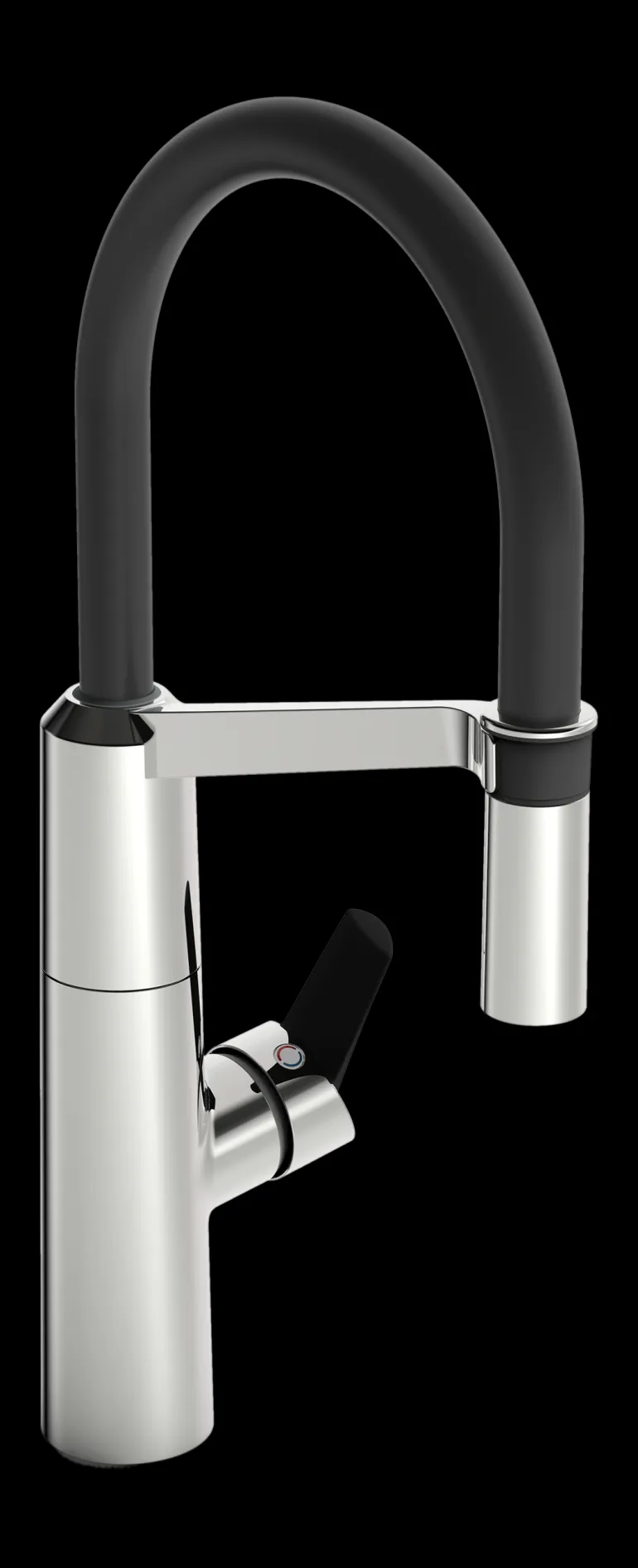 Keittiöhanassa on helppokäyttöinen sivuvipu, johon on helppo tarttua, ja korkea joustava juoksuputki. Juoksuputken kääntösäde on asetettu 120°:seen mutta se voidaan helposti vaihtaa 80°:seen tai 60°:seen.