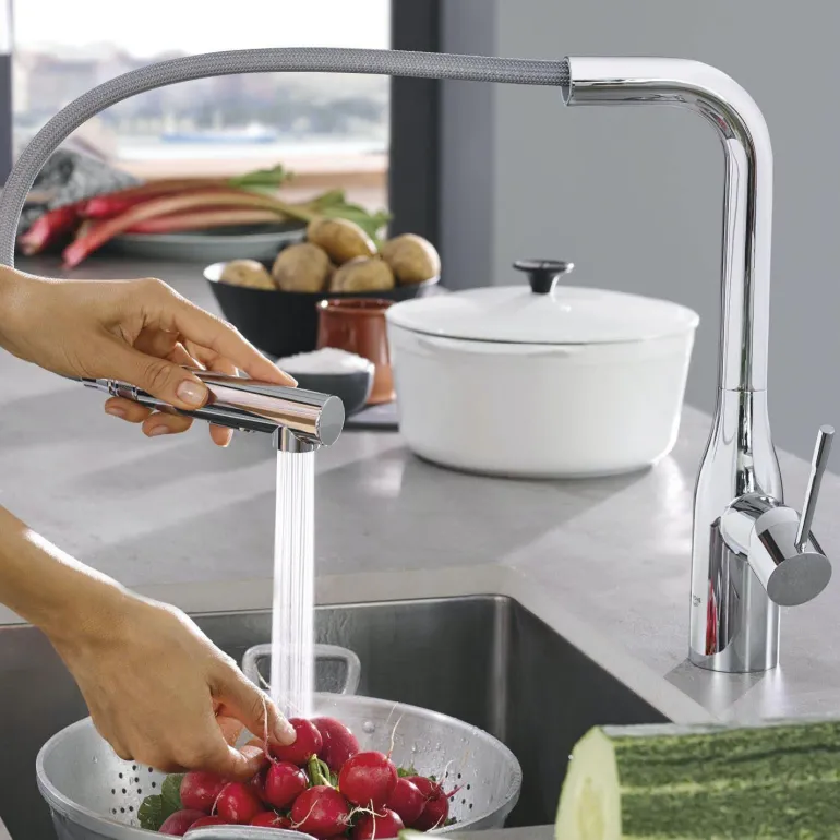 Grohe EasyDock -järjestelmän avulla suihkupää on helppo vetää sisään paikoilleen