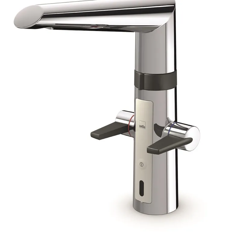 Keittiöhanassa on helppokäyttöiset kylmän ja lämpimän veden vivut, joihin on helppo tarttua. Kosketusvapaa toiminto ja korkea juoksuputki. Akun käyttö 3 V.