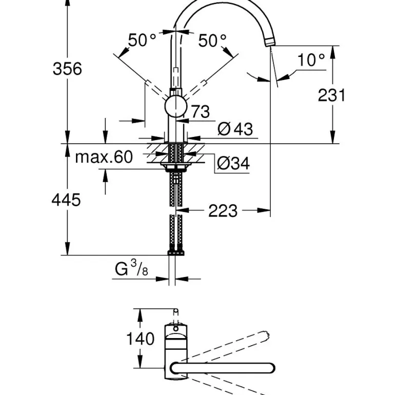 Grohen yksinkertaisen asennusjärjestelmän avulla voit asentaa uuden keittiöhanan hetkessä, jolloin saat nopeasti ja helposti uuden katseenvangitsijan keittiöön. Kestävän GROHE StarLight -kromipinnoitteen ansiosta se säilyttää kiiltävän ulkonäkönsä myös vuosien käytön jälkeen.