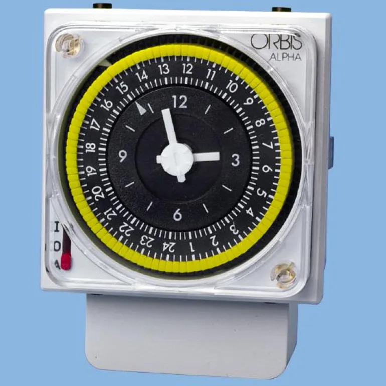 Kvartsikontrolloidut kellokytkimet, joissa on tehoreservi. Suunniteltu alaosaan, DIN-kiskoon tai etuosaan asennettavaksi. Mukana on DIN-kiskon kiinnike vakiona alustassa sekä kiinnike etukiinnitykseen. Varustettu kytkimellä Hand – 0 – Automaattinen.
