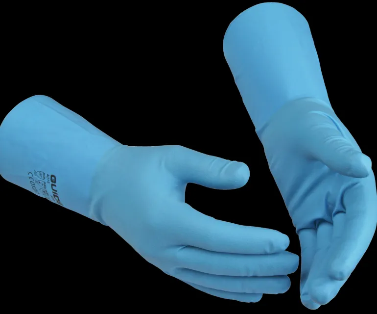Guide Gloves 4015 on erittäin ohut, joustava kemikaalisuojakäsine nitriiliä. Suojaa lyhytaikaiselta altistukselta hapoille, pesuaineille ja öljyille. Voidaan käyttää myös lämpösuoja- tai viiltosuojakäsineiden päällä.