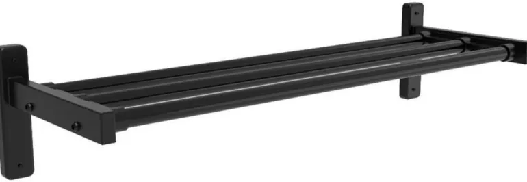 Enwex EX366*08SS on musta seinään kiinnitettävä kenkäteline, jonka päädyt jauhemaalattua terästä ja tangot muovipinnoitettua teräsputkea.