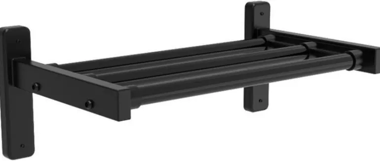 Enwex EX366*04SS on musta seinään kiinnitettävä kenkäteline, jonka päädyt jauhemaalattua terästä ja tangot muovipinnoitettua teräsputkea.