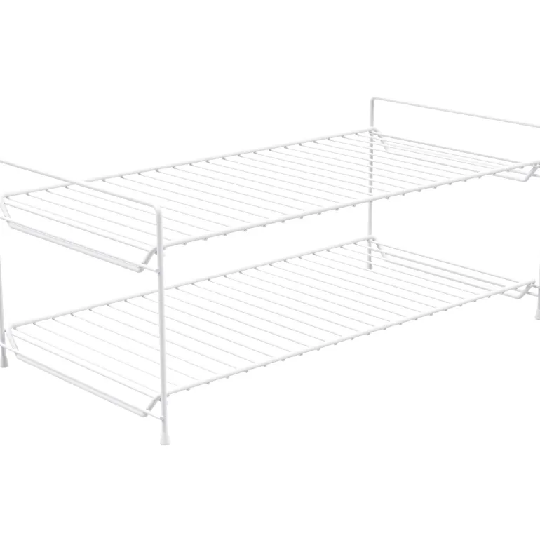 Erillinen kenkäteline, jossa on kaksi tasoa lisätilaa kenkien säilytykseen. Helppo siirtää ja säilyttää, koska se voidaan helposti purkaa ja varastoida litteänä. Mitat: 630x323x254 mm.