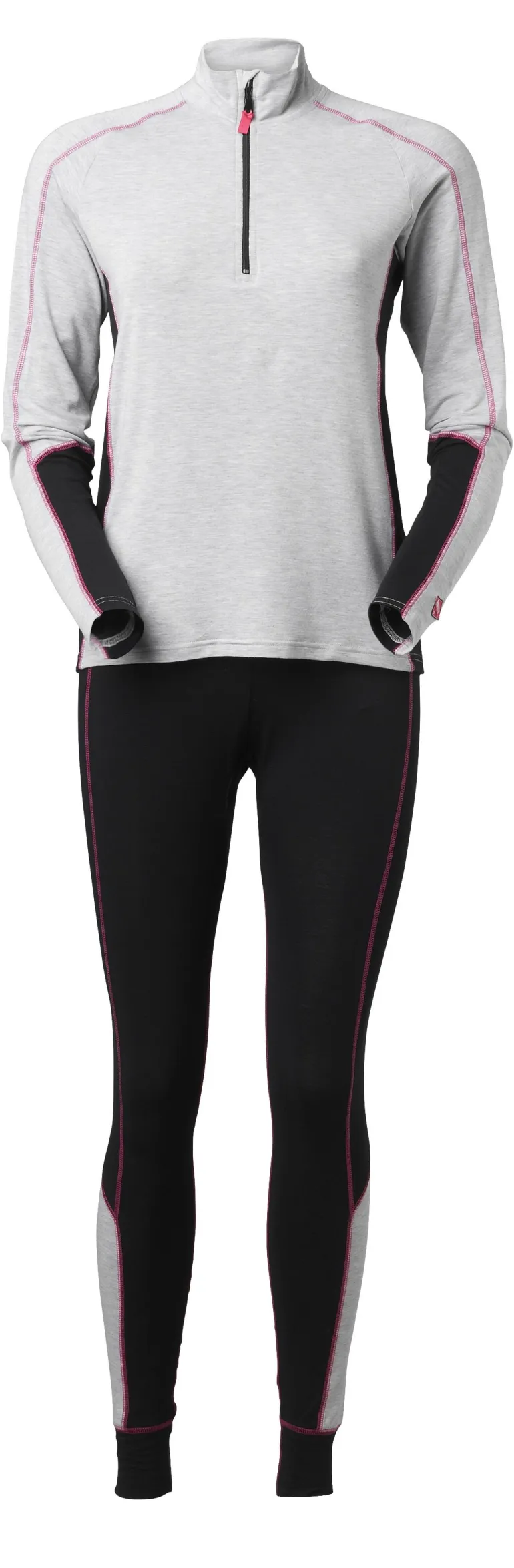 Naisten tekninen kaksivärinen kerrasto Life Wear Bamboo® -materiaalista, jossa tehosteväriset tikkaukset. Pehmeä ja joustava materiaali, joka pitää ihon viileänä ja tomii kosteutta siirtävänä ja hengittävänä.