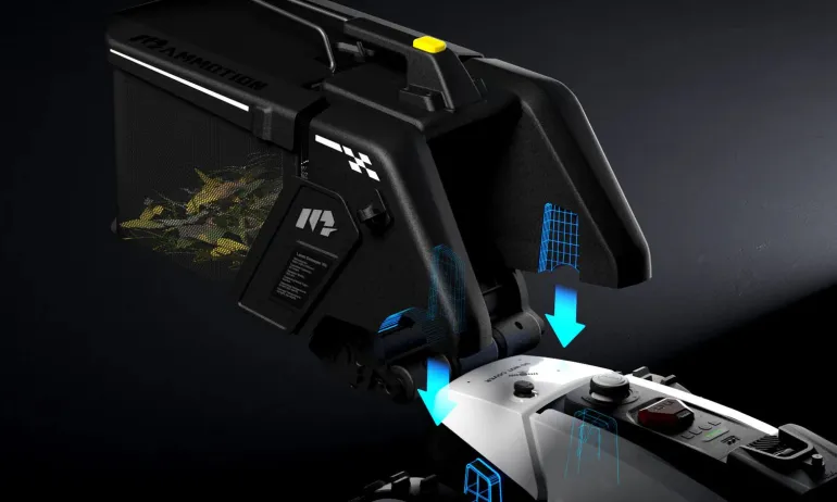 Akulla varustettu keruusäiliö Mammotion Yuka-sarjan robottiruohonleikkureille. Kerää ja tyhjentää automaattisesti hienojakoiset lehdet, roskat, leikatun ruohon, rikkaruohot, tammenterhot ja oksat. Asennus vie vain minuutin yksinkertaisella plug-and-play-toiminnolla.