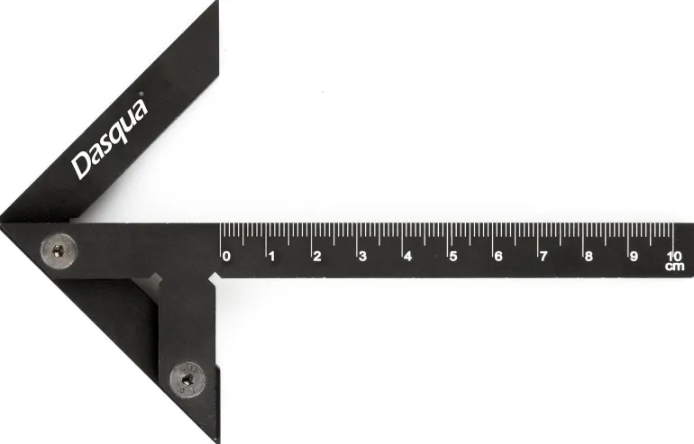 Dasqua 513899 on naarmunkestävä 150 x 130 mm:in keskiöintikulmain valmistettu karkaistusta alumiinista. Kulmaimessa laserkaiverrettu millimetriasteikko. Kulmalla on 0,3 mm:in toleranssi ja mittaa nopeasti pyöreän kappaleen keskipisteen.