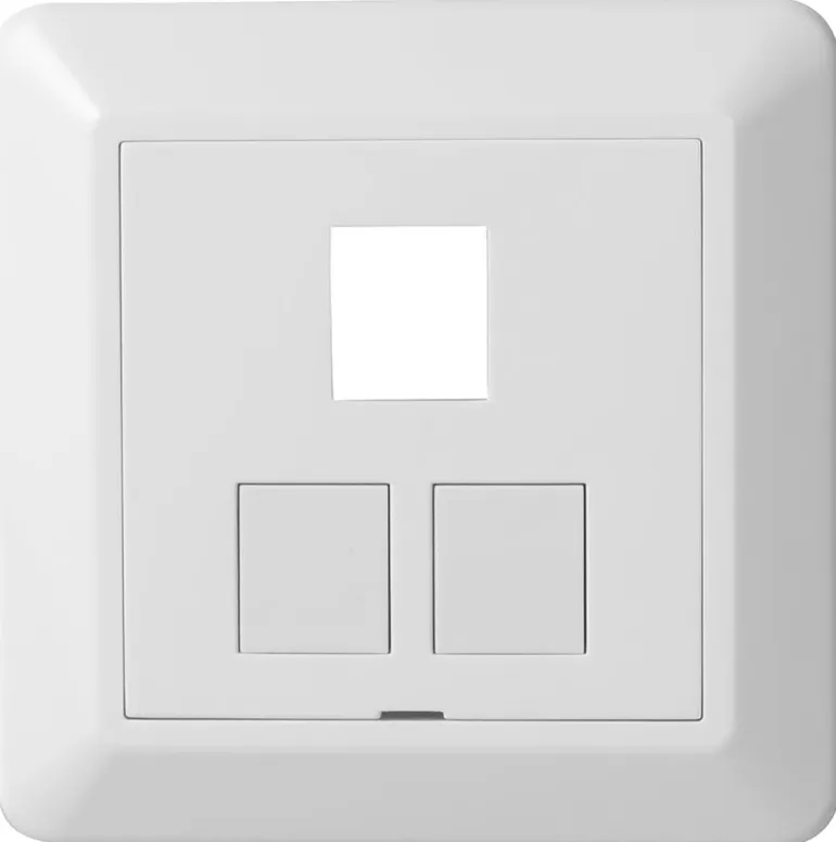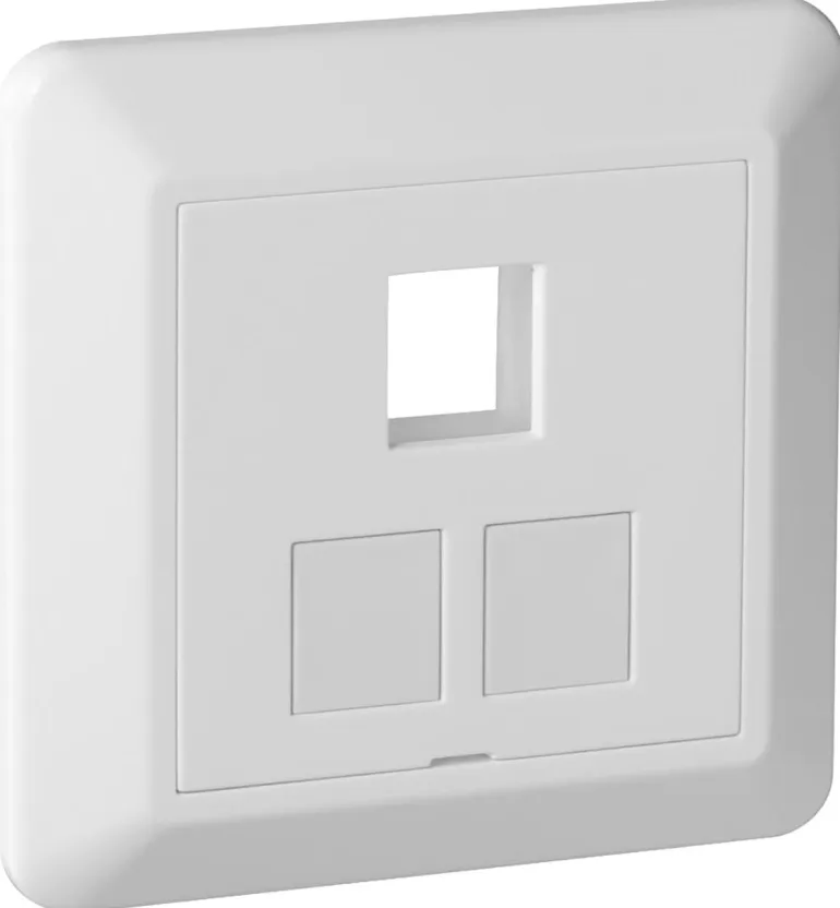 Suora keskiölevy aukoilla kolmelle Keystonelle, mukana kehys ja kaksi tulppaa. ELKOlla on valikoimassaan useita adaptereita, joissa on aukot Keystone-liittimille, esim. HDMI-adapteri, antennirasia, kaiutin- ja kuiturasia.