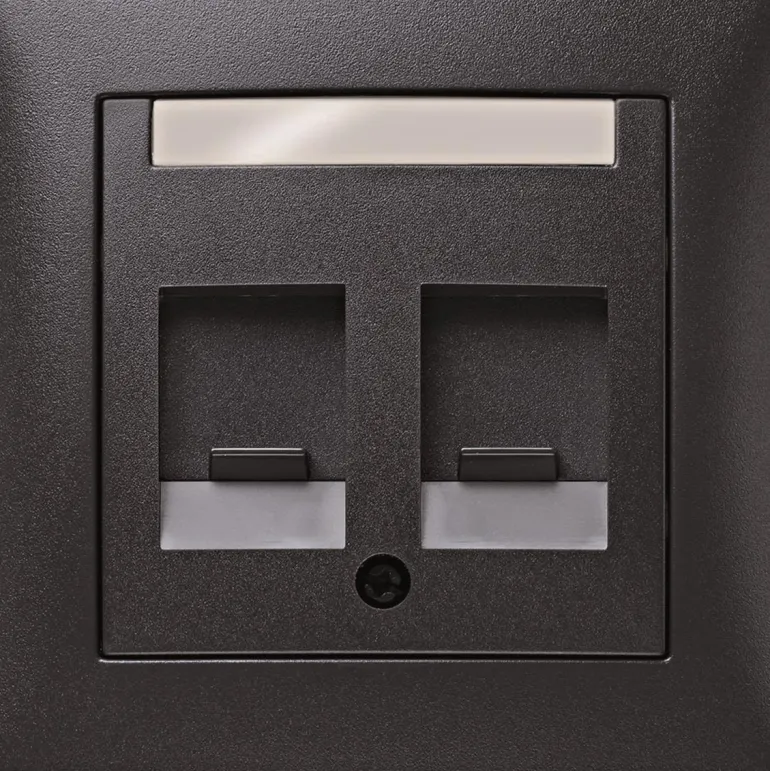 Keskialuslevy ja kehys S1-sarjan modulaaripistorasiaan, kahdella Keystone-pistokkeella.