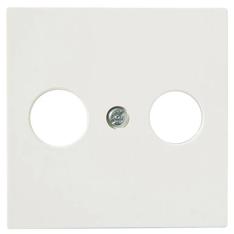 Yhdistelmäkehyksillä varustetun kokoonpanon keskikansi, ruuviasennus. Kansi on valmistettu halogeenittomasta lämpömuovista, käytetään radio- ja televisiopistorasiassa.