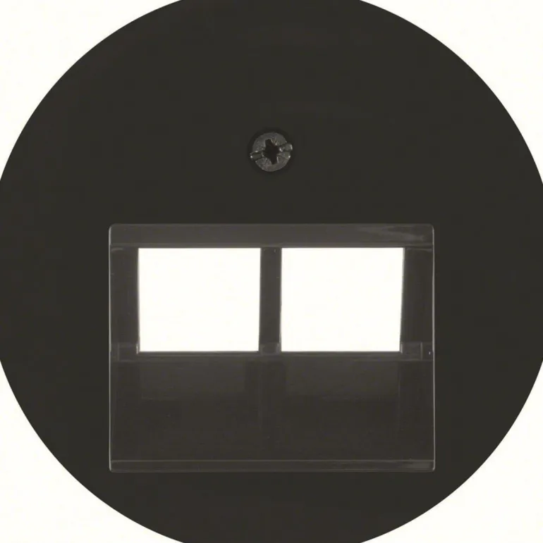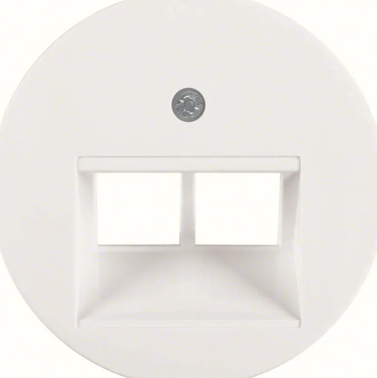 Tyylikäs, pyöreä seinälle asennettava keskiölevy asennusruuvilla, saatavana yhdellä tai kahdella datapistorasialla, värinä musta tai valkoinen.