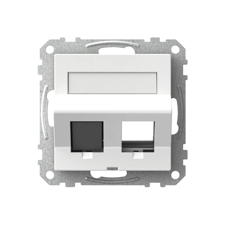 Exxact-sarjan kulmamallin valkoinen keskiölevy 2x Actassi S-One DPM- ja/tai Keystone-liittimeen. Mahdollista yhdistää mm. S-One DPM- ja Keystone-sovittimet, tyyppi USB. Asennus liitäntärasiaan cc 60 mm tai pinta-asennettuna rasiaan vähintään 33 mm Cat 6 UTP: lle ja mieluiten 47 mm STP: lle. Säädettävä kaksisivuinen tyyppikilpi; tyhjä, teksti ja värikoodaus. Täydennetään RJ45-liittimellä ja Exxact-kehyksellä.