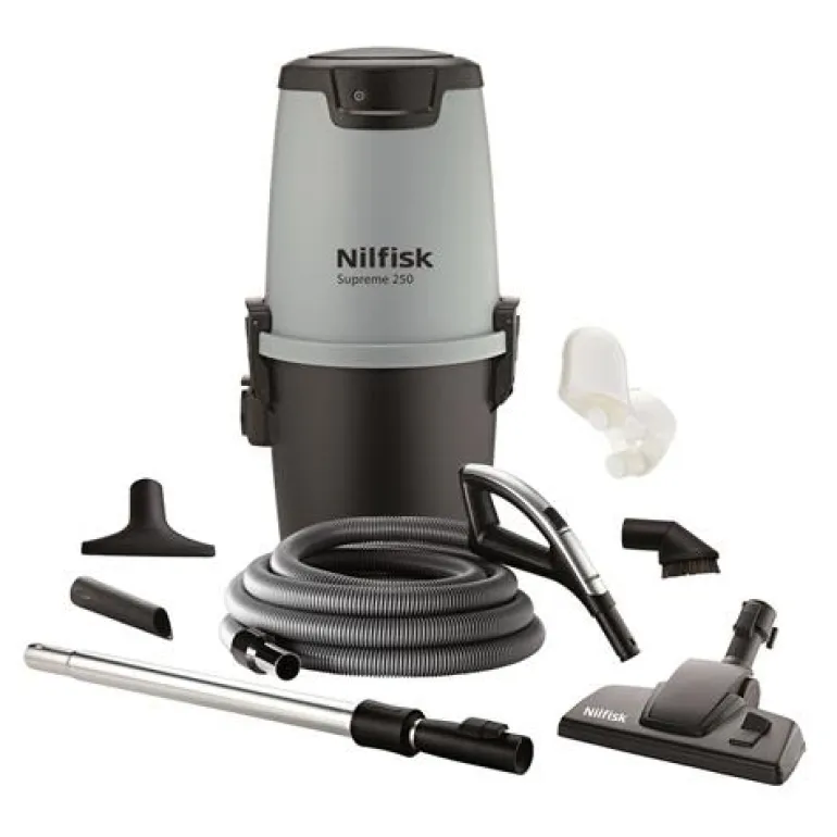 Nilfisk All-in-1 250 soveltuu noin 250 m² huoneistoihin/taloihin ja voidaan asentaa sekä uusiin että vanhoihin taloihin. Asennukseen on monia mahdollisuuksia. Putket voidaan vetää esim. seinissä, ilmanvaihtorummussa, ullakolla jne. Koneen sijoittamiseen on myös monia vaihtoehtoja. Sijoita kone mahdollisimman kauas asuintilasta – koneen tulisi kuitenkin olla huollettavissa muutaman kerran vuodessa. Aseta se tarvittaessa. ullakolle, autotalliin, ulkorakennukseen tai pesuhuoneen kaappiin. Imurin letkun maksimikoko 250 m².