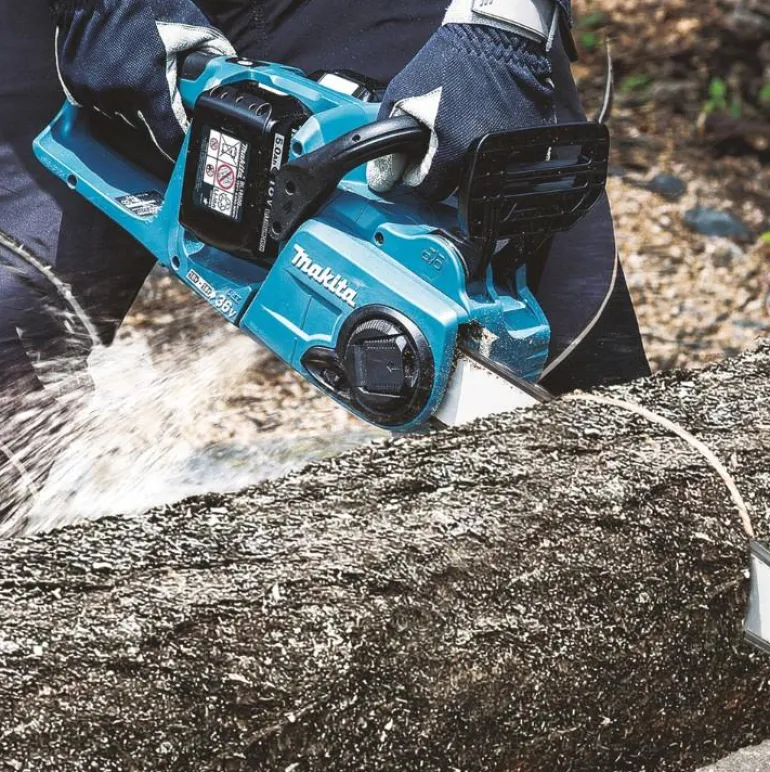 2×18 V ketjusaha automaattisella ketjun voitelulla ja työkaluttomalla teränvaihdolla. Varustettu akun ilmaisimella ja paino 5,1 kg.