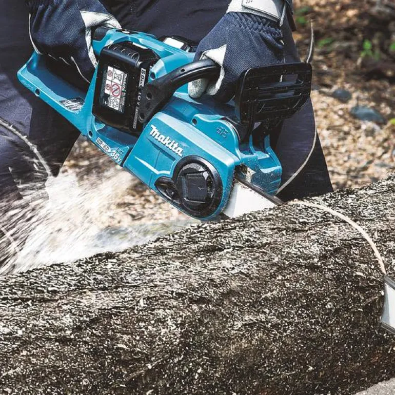 Makita DUC303Z on 36 V:n (2 x 18 V = 36 V) ketjusaha, jonka laipan pituus on 30 cm. Automaattinen ketjunvoitelu, terä vaihdettavissa ilman työkaluja. Makitan ainutlaatuinen 2x18V:n alusta tarjoaa saman suorituskyvyn kun nykyisin käytössä olevat 36V:n laitteet, mutta alhaisempaan hintaan ja pidemmällä käyttöajalla.