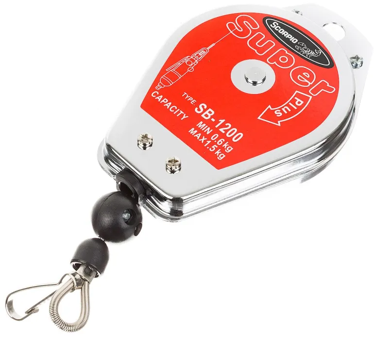 Scorpio SB-1200 on työkalukevennin työkalujen ja pienten koneiden ripustamiseen. Keventimen avulla työkalustasi tulee ”painoton” ja siten helppokäyttöisempi. Työkalu säädetään oikealle korkeudelle säädettävällä kumivaimentimella. Vähentää nostoja ja auttaa ennaltaehkäisemään työtapaturmia.