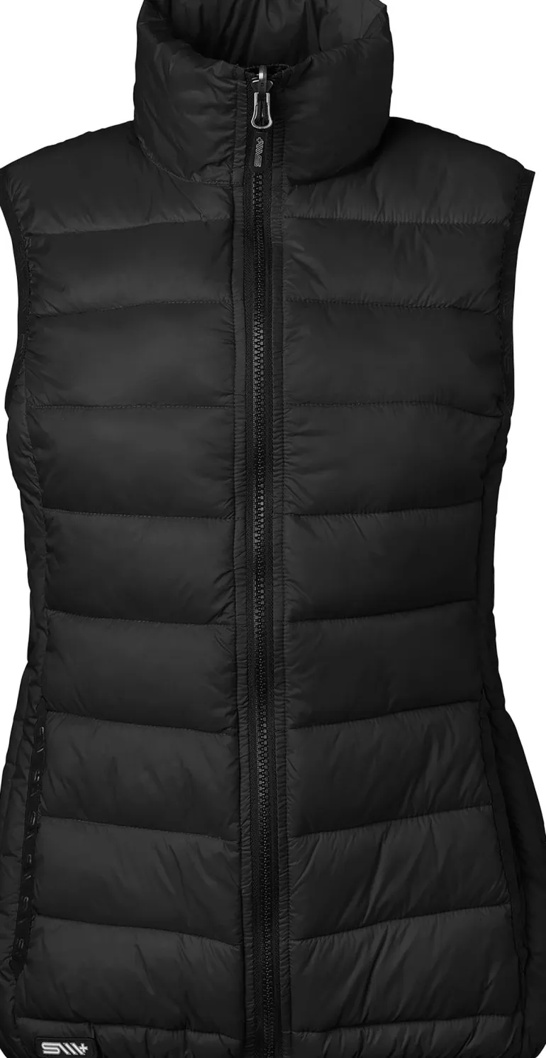 South West Alma on vartalonmyötäinen naisten kevyttoppaliivi, jossa untuvanomainen polyesterivanu. Voidaan käyttää erillisenä tai kiinnittää kätevästi Alma-kuoritakkiin lämmittäväksi vuoriksi. Vanut pysyvät paikoillaan kapeiden kanavien avulla. Kaksi käytännöllistä sivutaskua. Helmassa, kädenteissä ja sivutaskuissa joustava nauha, jossa kuumapainatus. Helmassa kuminen logo. Vetoketjuissa mustat vetimet.