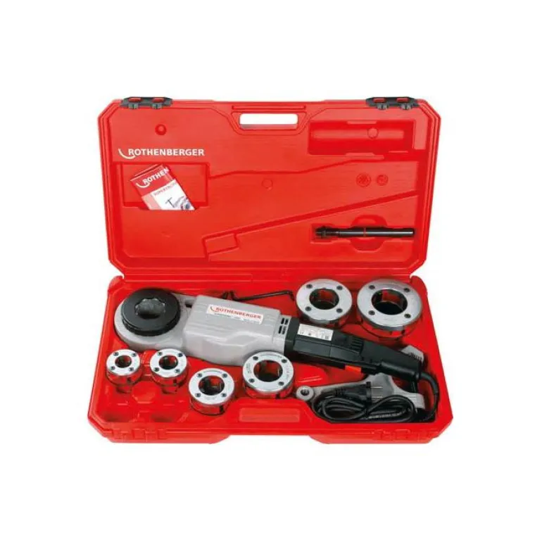 Rothenberger Supertronic 2000 on tarkka, kätevä ja tehokas kierrekone putkille Ø 1/2, 3/4, 1, 1 1/4, 1 1/2, 2″. 1010 W. Helppokäyttöinen, jatkuvaan käyttöön tehty laatukone. Suoriutuu keskeytymättömästä kierteityksestä yhdemukaisen voimansiirron ansiosta myös maksimikuormituksessa. Erittäin vähäinen huoltotarve.