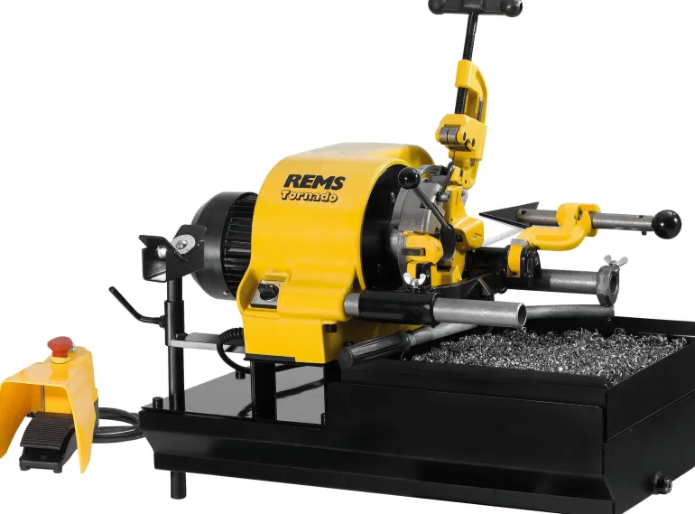 Putkikierrekone putkikierteille (1/16) ⅛ – 2″, 16 – 63 mm ja pulttikierteille (6) 10 – 60 mm, ¼ – 2″. Tornado 2020 T -mallissa on integroitu öljysäiliö, lastuastia ja kolmivaiheinen kääntönapamoottori 400 V, 50 Hz, 2000 W. Huoltovapaa käyttömekanismi, jalkaturvakytkin hätäpysäytyksellä, kaksi automaattista kiristysistukkaa ja automaattinen voitelujäähdytys. Työkalusarjassa on automaattinen yleiskierrepakka kaikille kierteille, myös pitkille kierteille, automaattinen avautuminen, kierteen pituuden automatiikka kartiokierteelle, leikkuuleuat putkenkierteelle, kartio ISO 7-1, EN 10226 (DIN 2999, BSPT) R½ – ¾ ja R 1 – 2 oikea, putkileikkuri, putken sisäpuolen purseenpoistotyökalu ja painovipu. Käytetään työpöydällä, jalustassa (ei sisälly), siirrettävässä ja taitettavassa pyöräjalustassa (ei sisälly) tai siirrettävässä pyöräjalustassa (ei sisälly).