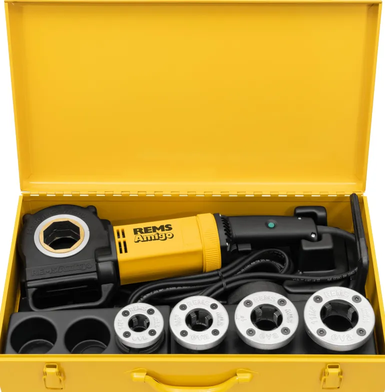 Verkkovirtakäyttöinen kierrekone helposti vaihdettavilla kierrepakoilla, putkikierteille ⅛ – 1¼”, 16 – 40 mm, pulttikierre 6 – 30 mm, ¼ – 1″. Koneessa huoltovapaa käyttömekanismilla, tehokas yleismoottori, 230 V, 50 – 60 Hz, 1200 W ja turvakytkin, suurempi teho suunnanvaihdossa hiiliharjan automaattisen säädön ansiosta. Yleismoottori, jossa on suunnanvaihdossa 30% suurempi teho hiiliharjan automaattisen säädön ansiosta, huipputeho jopa 1800 W. Kierrepakat, kartiomaisille putkikierteille ISO 7-1, EN 10226 (DIN 2999, BSPT) R oikea ja kierteitys sähköasennusputkille standardin EN 60423 M mukaisesti.