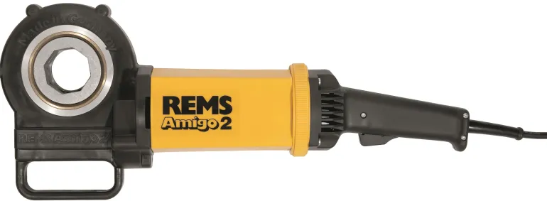 Sähköinen kierteityskone, maks. 2″. Tehokas, kätevä sähkötyökalu kierteittämiseen, ainutlaatuinen tukikaari. Voidaan käyttää missä tahansa ilman ruuvipenkkiä. Malliin REMS EVA helposti vaihdettavat kierrepakat 1/8″-2″.