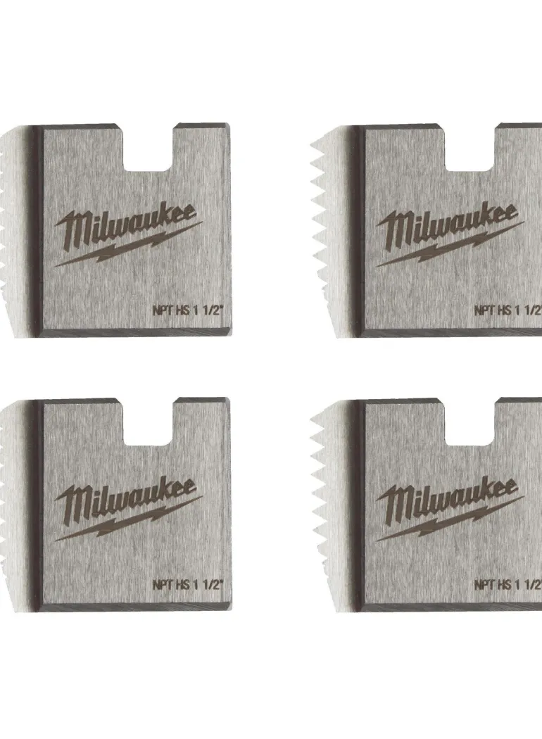 Milwaukee 48361111 on 4-osainen sarja kierreleukoja (FPTD 1-1/2″ NPT HS) käytettäväksi Milwaukee -kierteityskoneiden kanssa. HS-leuat parhaan suorituskyvyn saavuttamiseksi ruostumattomissa teräsputkissa.