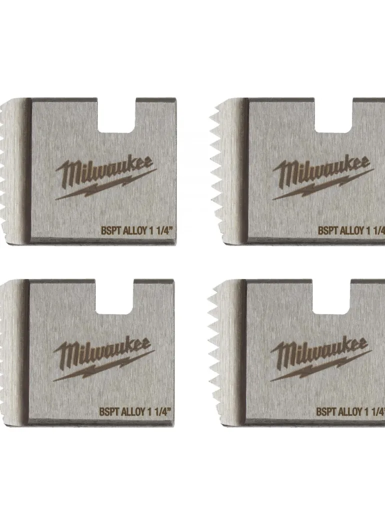 Milwaukee 4932480230 on 4-osainen sarja kierreleukoja (FPTD 1-1/4″ BSPT ALLOY) käytettäväksi Milwaukee -kierteityskoneiden kanssa. Alloy-metalliseosleuat pitkäkestoiseen suorituskykyyn mustissa ja galvanoiduissa putkissa.