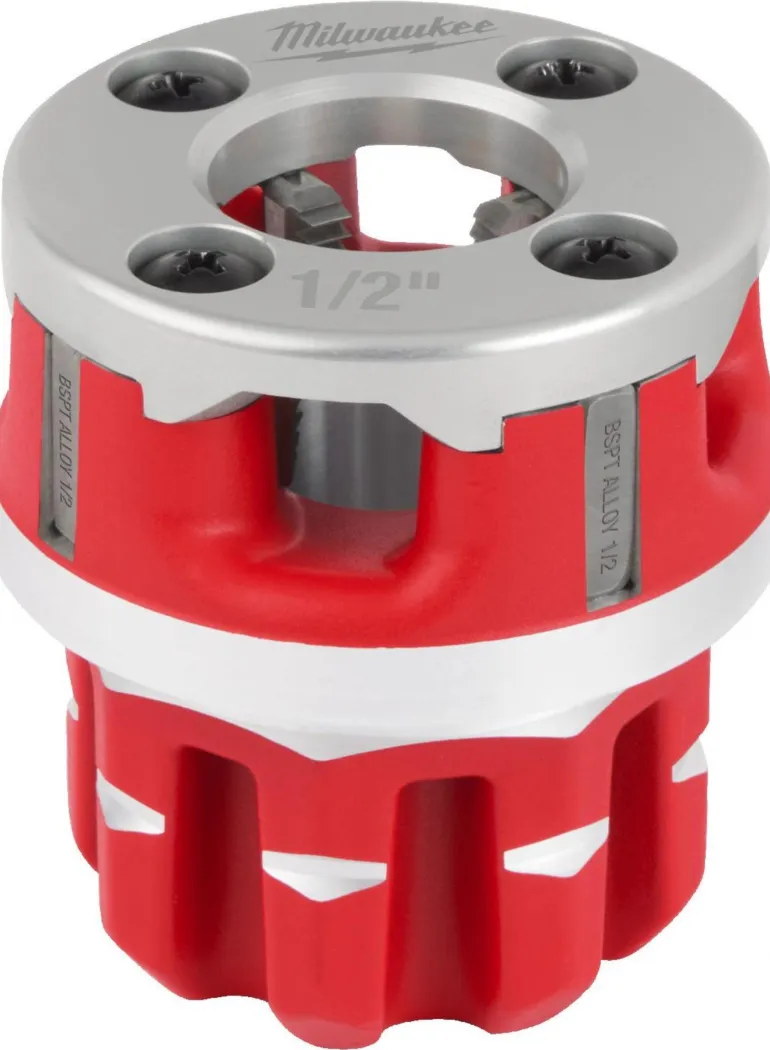 Milwaukee 4932480245 on kierrepää (FPT114H 1/2″ BSPT ALLOY) kierteityskoneelle Milwaukee M18 FPT114. Sisältää sarjan 1/2″ BSPT ALLOY-kierreleukoja.