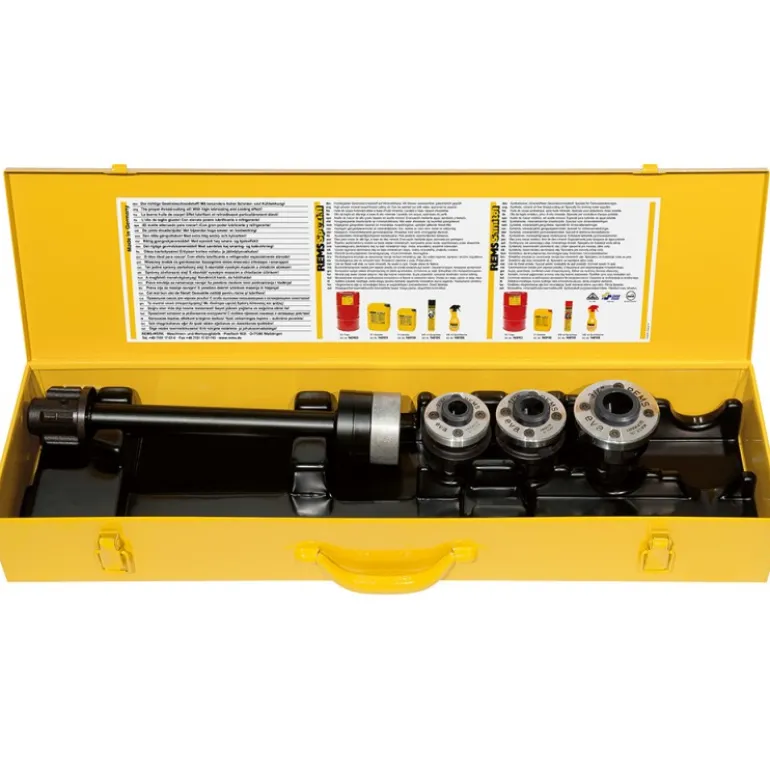 REMS 520056R on kierrepakkasarja S, NPT ½ – ¾ – 1. Kierrepakat S kartiomaiselle putkikierteelle, oikea, ISO 7-1, EN 10226 (DIN 2999, BSPT) tai kartioputkikierteelle ASME B1.20.1, jatkovarsi 300 mm. Tukevassa teräspeltikotelossa.