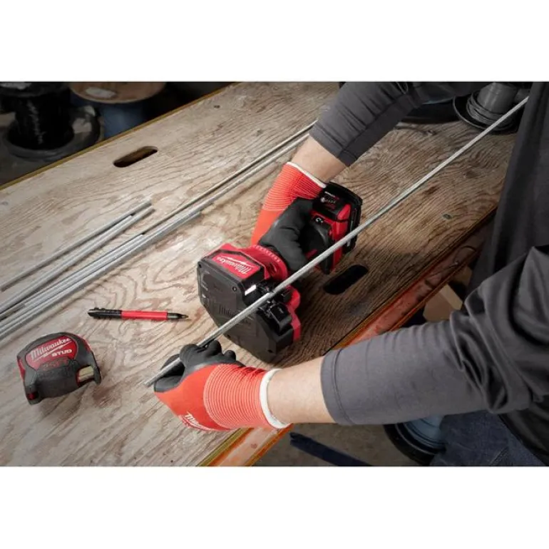 - Leikkaa integroidun hiiliharjattoman moottorin ansiosta M6, M8, M10 ja M12 pehmeää terästä tai M6, M8 ja M10 ruostumatonta terästankoa. Käyttöaika jopa 400 leikkausta yhdellä 2,0 Ah:n akulla