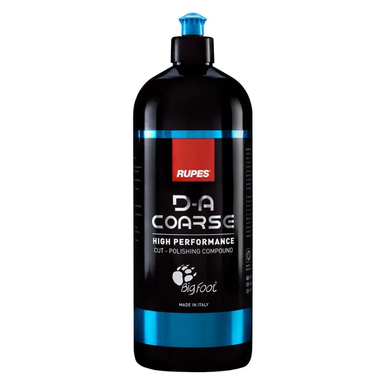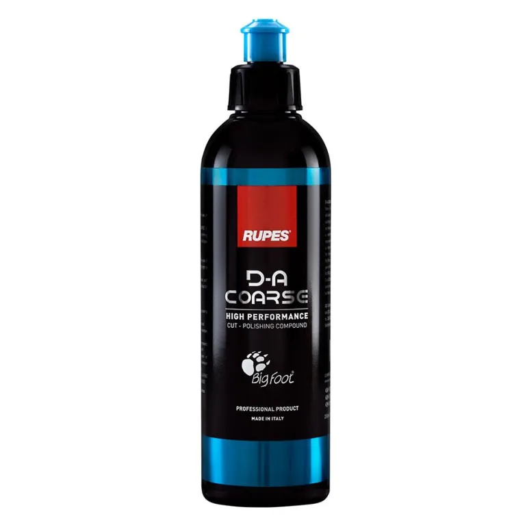 D-A COARSE -kiillotusaine on suunniteltu maksimoimaan tehokkuus. Rupesilla sininen väri on synonyymi suurelle työstölle, ja sitä käytetään usein ensimmäisenä askeleena poistamaan naarmut nopeasti vahingoittuneesta/kuluneesta esineestä. Suuri työstö, minimaalinen pöly ja helppo kuivata. Kiillotusaine muuttuu nopeasti läpinäkyväksi, joten työn aikana on helppo nähdä, kun naarmut ovat poissa. Kestävä voitelu merkitsee pitkiä kiillotussyklejä kuivumatta. Kiillotusaine jättää hyvän kiillon suhteessa siihen, kuinka nopeasti naarmut häviävät. Sopii Rupesin oskilloivaan kiillotusjärjestelmään.