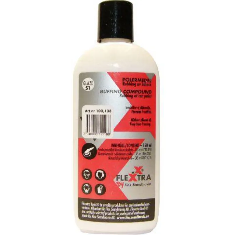 Flexxtra 100138 on 150 ml kiillotusainetta, Glaze S1. Hankaava hieno kiillotusaine, jossa on naftan vähäinen haihtuvuus.