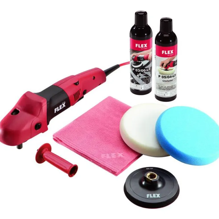 FLEX PE 14-3 125 Set on 1400 W:n kiillotuskone, jonka laikan halkaisija on 160 mm, tukialustan halkaisija 150 mm ja maksimikierrosluku 3700/min.
