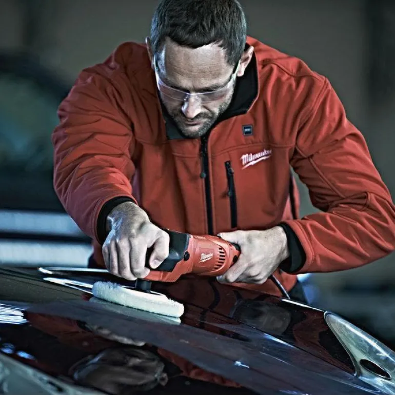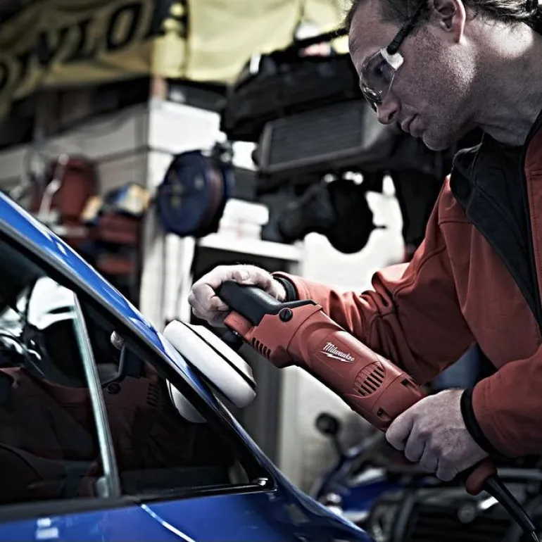 1 450 W:n hiomakone, jonka laikan halkaisija on 200 mm, nopeus säädettävissä ja suurin kierrosluku 2 100 kierrosta/min.