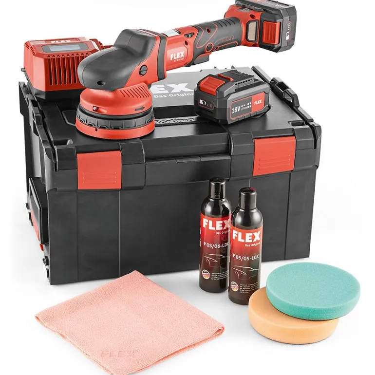 FLEX XCE8 125 18.0-EC P-Set on 18 V kiillotuskone, joka on epäkesko ja jossa on hallittu liikekuvio. Koneessa on harjaton moottori, jonka nopeus on jopa 433 kierr./min ja kuormittamattomana 5600-8600 kierr./min. Vähäisen lämmöntuoton ansiosta sopii lämpöherkille lakoille. Mukana akut, laturi ja kuljetuslaukku.
