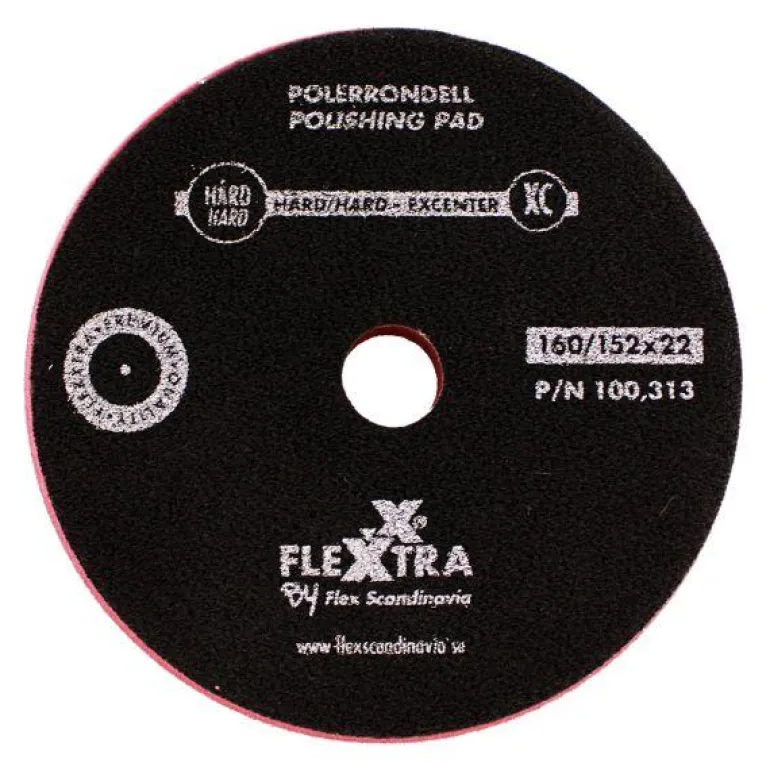 Flexxtra XC 100313 -kiillotuslaikka, halkaisija 160 mm. Karkea ja kova sieni, PPI 65. Sopii rapautuneiden ja haalistuneiden lakkapintojen ja syvien lakkavaurioiden hankaamiseen ja kiillotukseen. Korkea kiilto/lakkaus Glaze S1:n kanssa. Vähäisempi kiilto saadaan Glazen ja Glaze+:n kanssa.