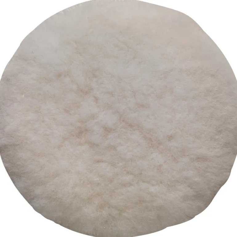 Itsekiinnittyvä, lampaanvillainen kiillotustyyny. Halkaisija 130 mm.