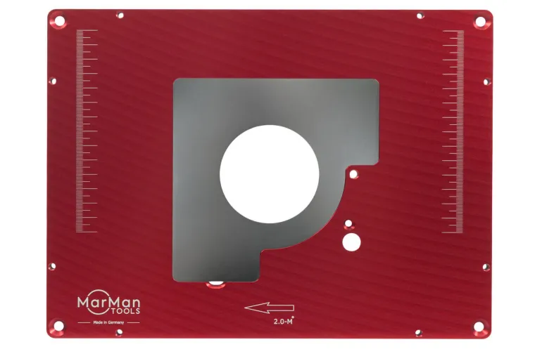 Kiinnityslevy IP2.0-M pienennyslevyillä. Esiporattu useille Makita- ja Mafell-jyrsimille. Alumiinia, jonka paksuus on 9 mm, erinomainen vakaus, kestävyys ja tasaisuus. Korkealaatuiset sinkityt 2 mm:n pienennyslevyt, joissa on leikkausaukot Ø 32 ja 68 mm.