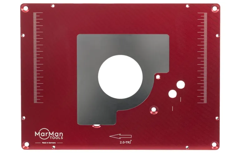 IP2.0K-TP KREG-muodossa pienennyslevyillä. Esiporattu Triton-jyrsimille. Alumiinia, jonka paksuus on 9 mm, erinomainen vakaus, kestävyys ja tasaisuus. Korkealaatuiset sinkityt 2 mm:n pienennyslevyt, joissa on leikkausaukot Ø 32 ja 68 mm.