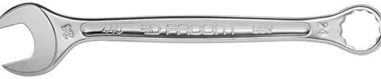 Facom 440.1P3/8 on kiintoavain, taivutettu 15°, oteleveys 1’3/8″, OGV-profiili ja 12-kulmainen silmukkapää voimakkaaseen kiristämiseen.